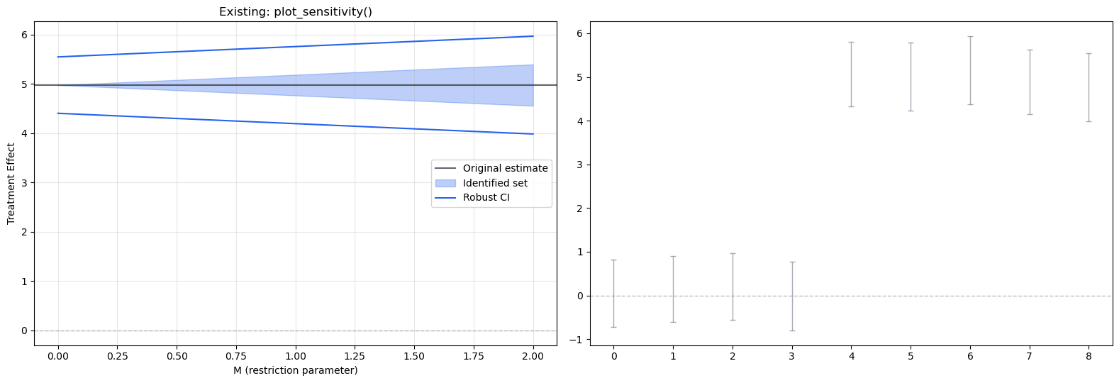 plot_sensitivity() shows how CIs widen as \(\bar{M}\) increases — a separate diagnostic plot